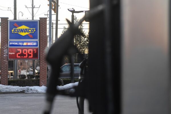 Gas prices at a Sunoco gas station in Media, Pennsylvania, US, on Monday, March 2,…