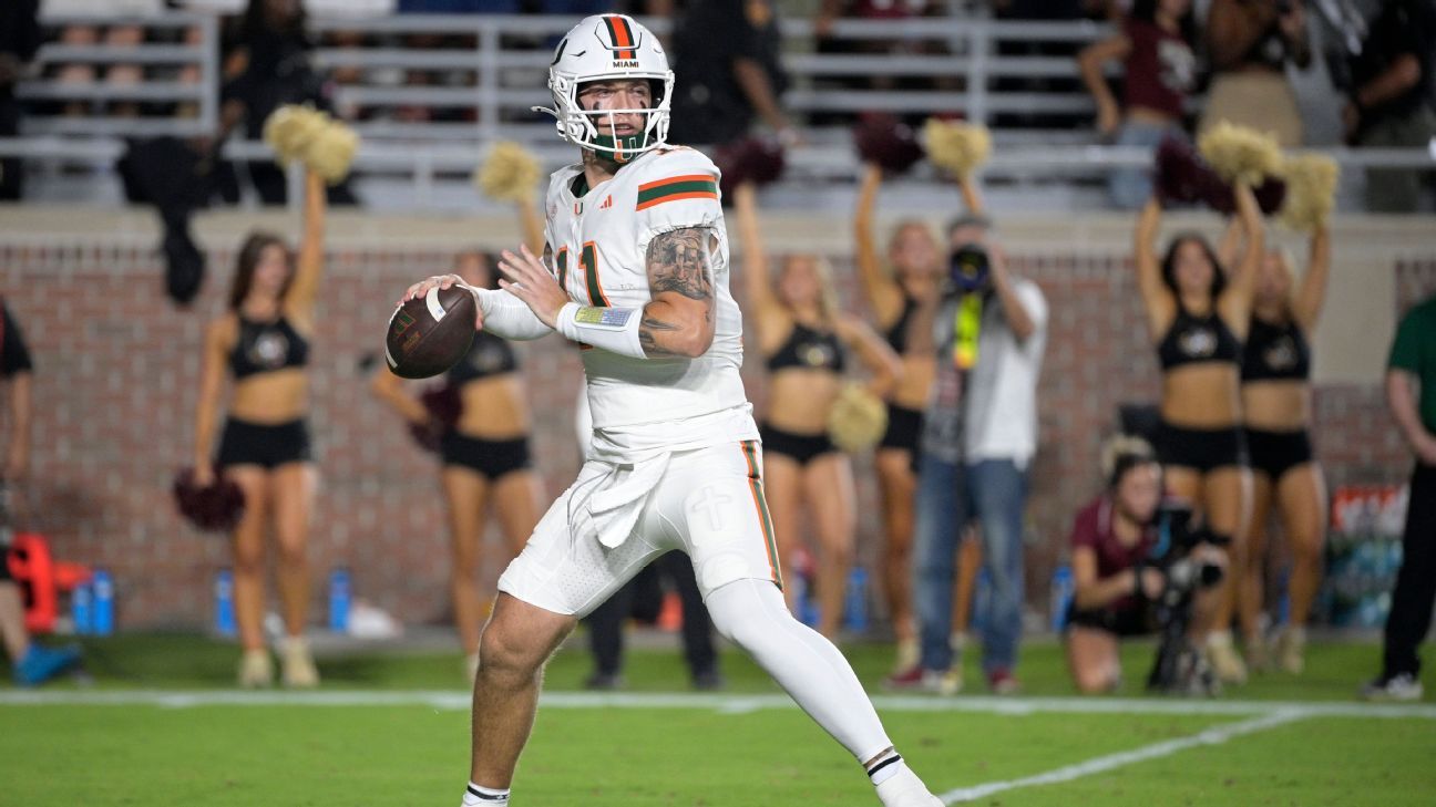 The Hurricanes have shown the ability to play smashmouth football and connect on explosive plays in the passing game in their 5-0 start. But they also have gone through lulls on offense that have turned double-digit leads into games that ended a little too close for comfort. It happened again in a 28-22 win over Florida State. Miami jumped out to a 28-3 lead heading into the fourth quarter. In that final quarter, Miami had 17 total yards, one first down and went 0-4 on third down. Against Florida and Notre Dame, Miami also had double-digit second-half leads before both teams made it a one score game as well. Miami did enough in all three of those games to win. But Miami coach Mario Cristobal also acknowledged after the game, “We’ve got a long ways to go.” — Andrea Adelson