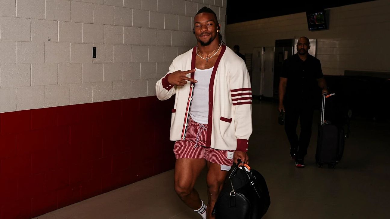 facing san francisco 49ers On “Sunday Night Football” atlanta falcons rushing back bijan robinson Arrived in a tank top under a cream and red cardigan with matching shorts.