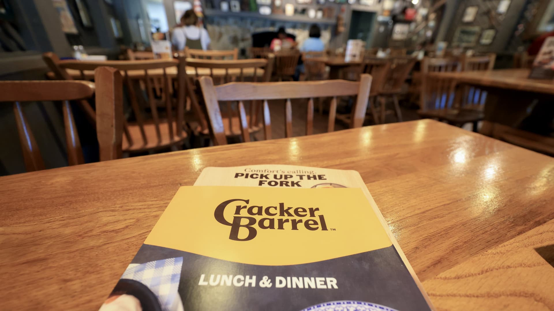 The new Cracker Barrel logo is seen on a menu inside the restaurant on August 21, 2025 in Homestead, Florida.