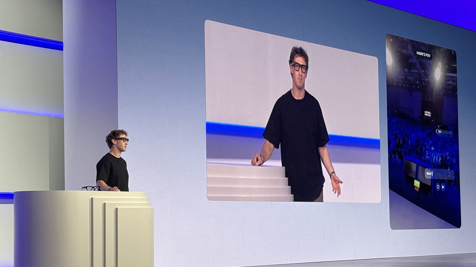 Meta CEO Mark Zuckerberg speaks as he presents the new Meta Ray-Ban Display at the 2025 Meta Connect conference in Menlo Park, California, on Sept. 17, 2025.